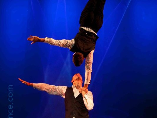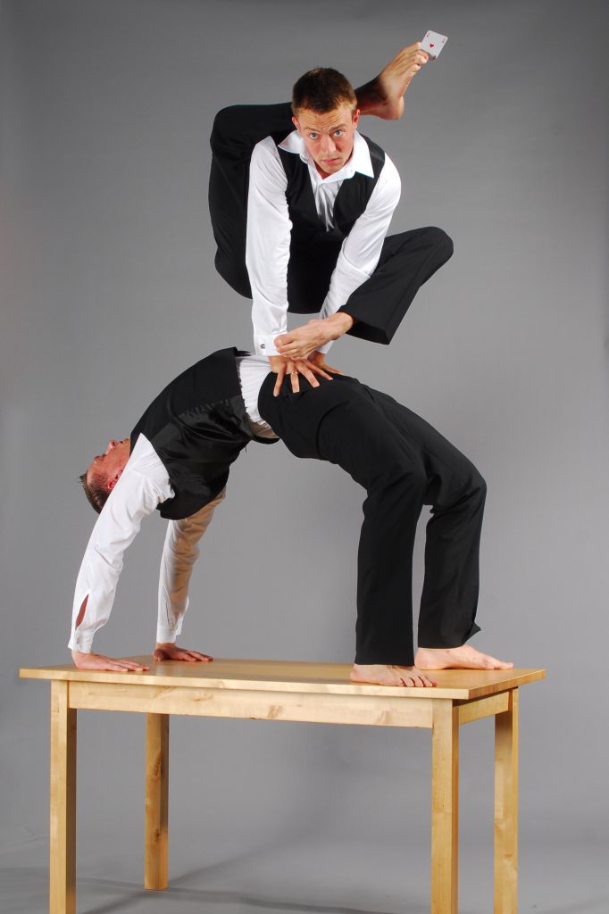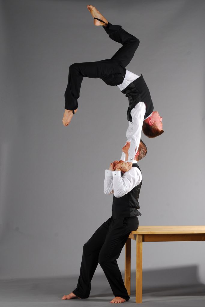 Pri pohľade na akrobatické kúsky Duo NightPeople nám bolo jasné, že kostýmy toho musia zniesť veľa. Javiskové obleky pre oboch akrobatov sme vyrobili tak, aby vyzerali ako klasický pánsky oblek a zároveň boli mimoriadne odolné a dostatočne flexibilné.